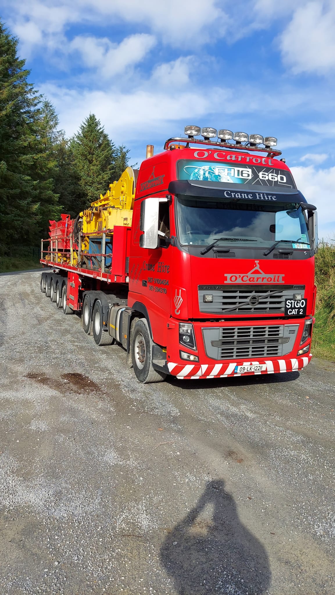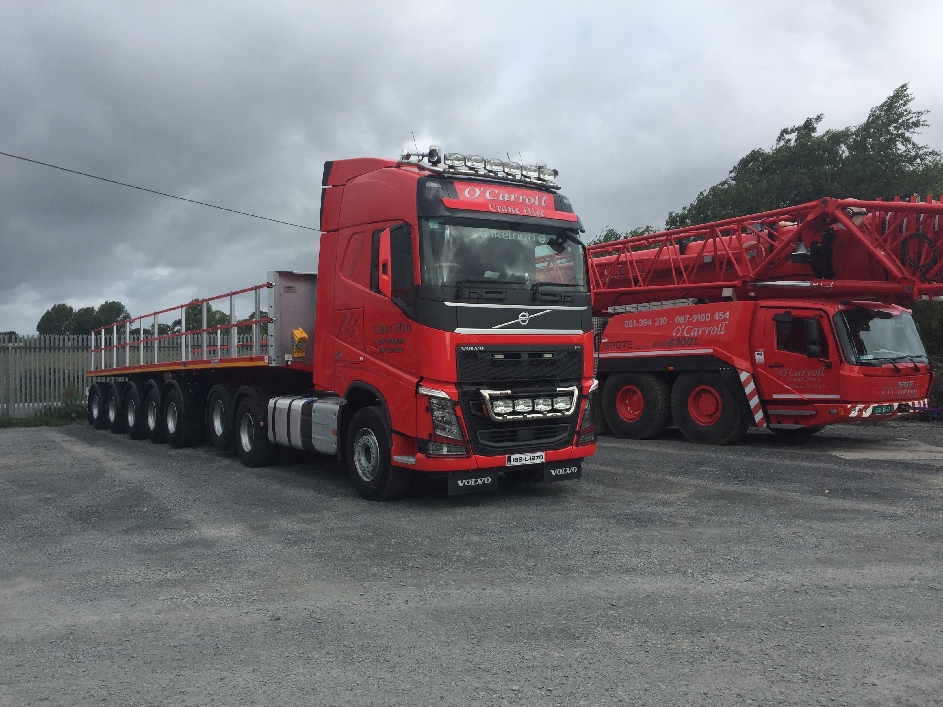 At O’Carroll Haulage & Crane hire Ireland we specialise in transporting abnormal loads throughout Ireland. We provide Transport solutions for a wide range of industries including building & construction, private sector, Irish Rail, E.S.B, Gardai, Telecommunications, TV outside broadcast units,agricultural, heavy industrial, mining, timber and plastics industries. We are a very versatile company with an emphasis on customer satisfaction.