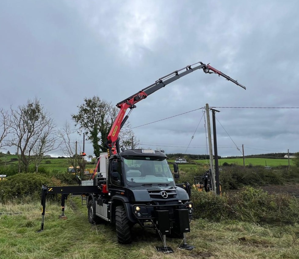 All-Terrain Unimog truck mounted Crane. Max Lifting Capacity is 320kg at 21mtrs radius and the Maximum telescopic boom reach is 21m. Perfect for those awkward and tight areas.